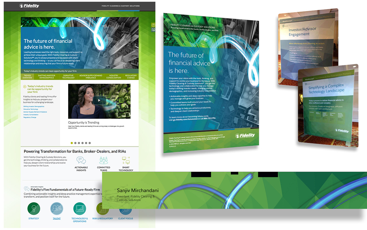 Fidelity Clearing & Custody Solutions landing zone, supporting collateral, and video samples